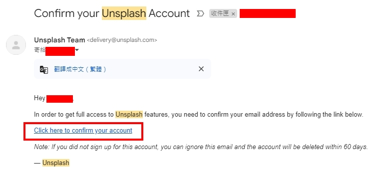 驗證帳號會收到郵件,點擊驗證的連結就可以了