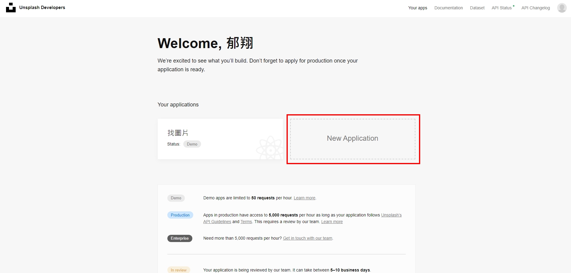 可以先到https://unsplash.com/oauth/applications建立一個應用程式