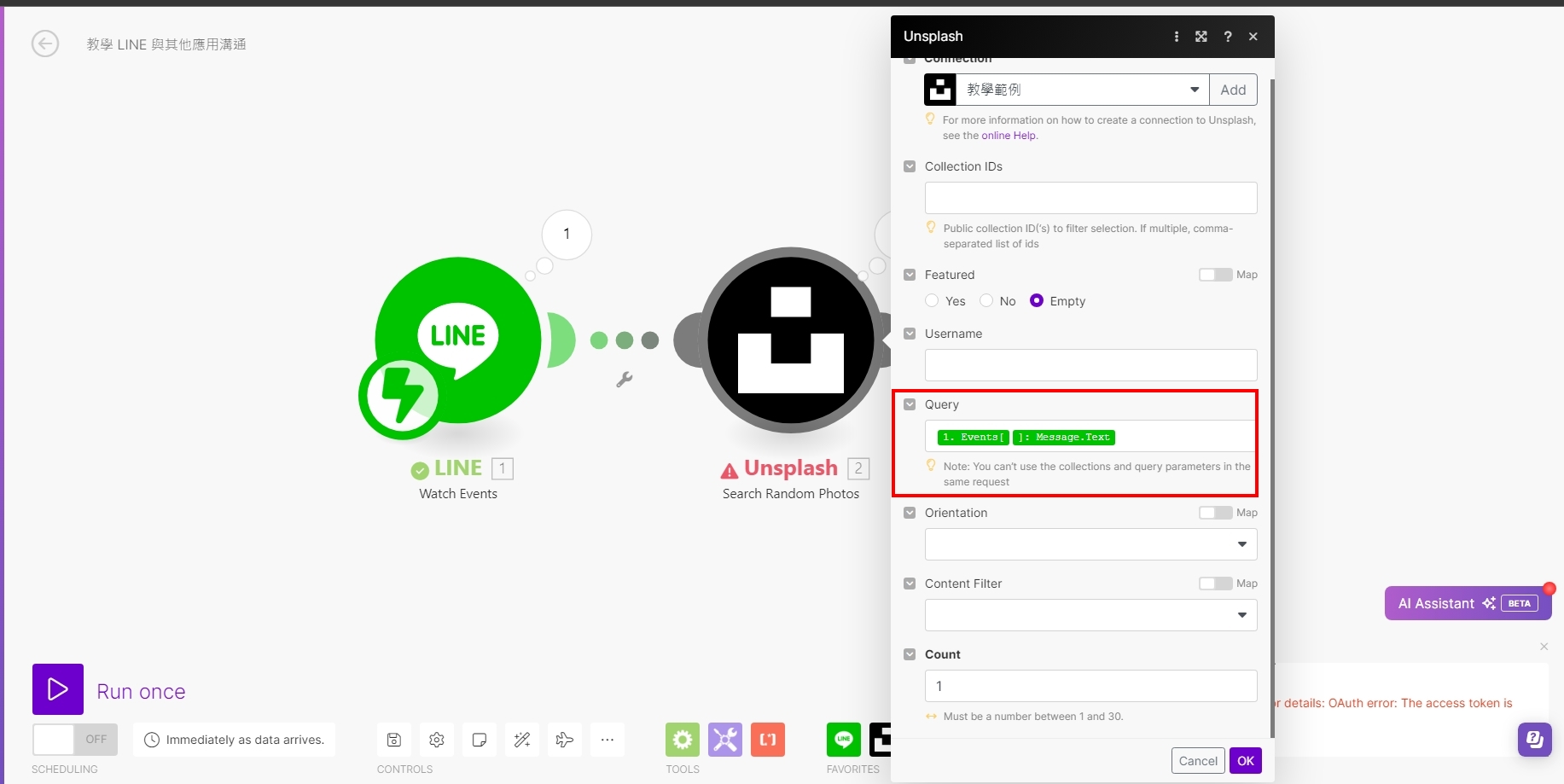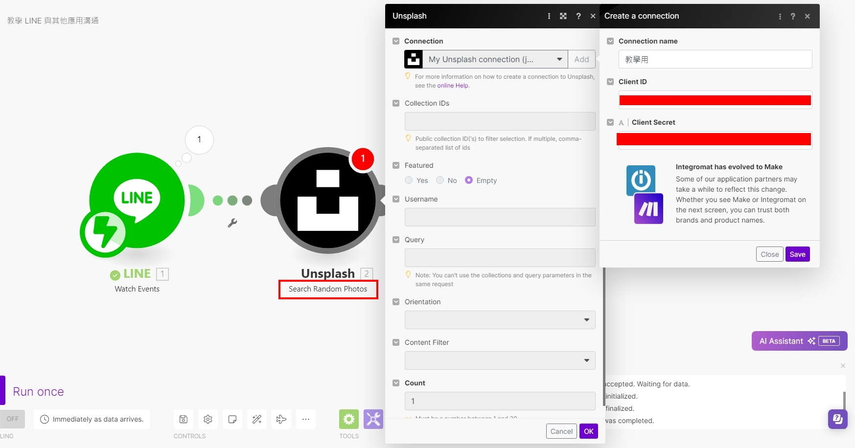 建立LINE小秘書的操作可以參考文章:如何利用Make與LINE建立自動化客服小秘書